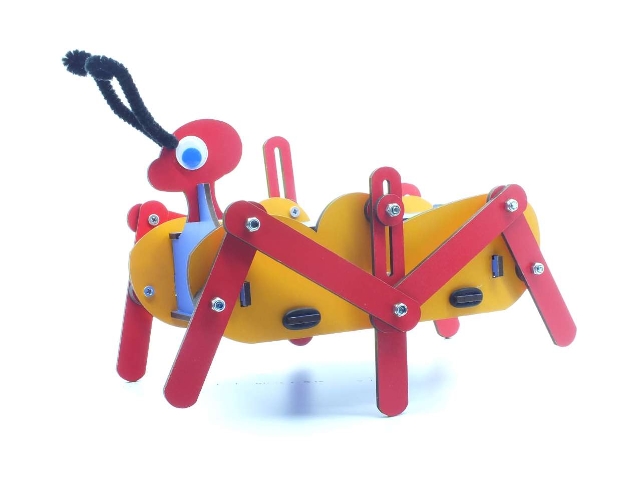 Motorlu maker ürünlerimizden Karınca robotumuz kutudan demonte şekilde çıkar. Sadece tornavida ve maker anahtar kullanarak parçaları birleştirirsiniz.Havya ve sıcak silikon kullanmaya gerek yoktur. Çocuğunuzla kaliteli vakit geçirir ve motor kas gelişimine katkıda bulunursunuz. Ben yaptım duygusunu tadarak özgüveninin gelişmesine katkı sağlarsınız.