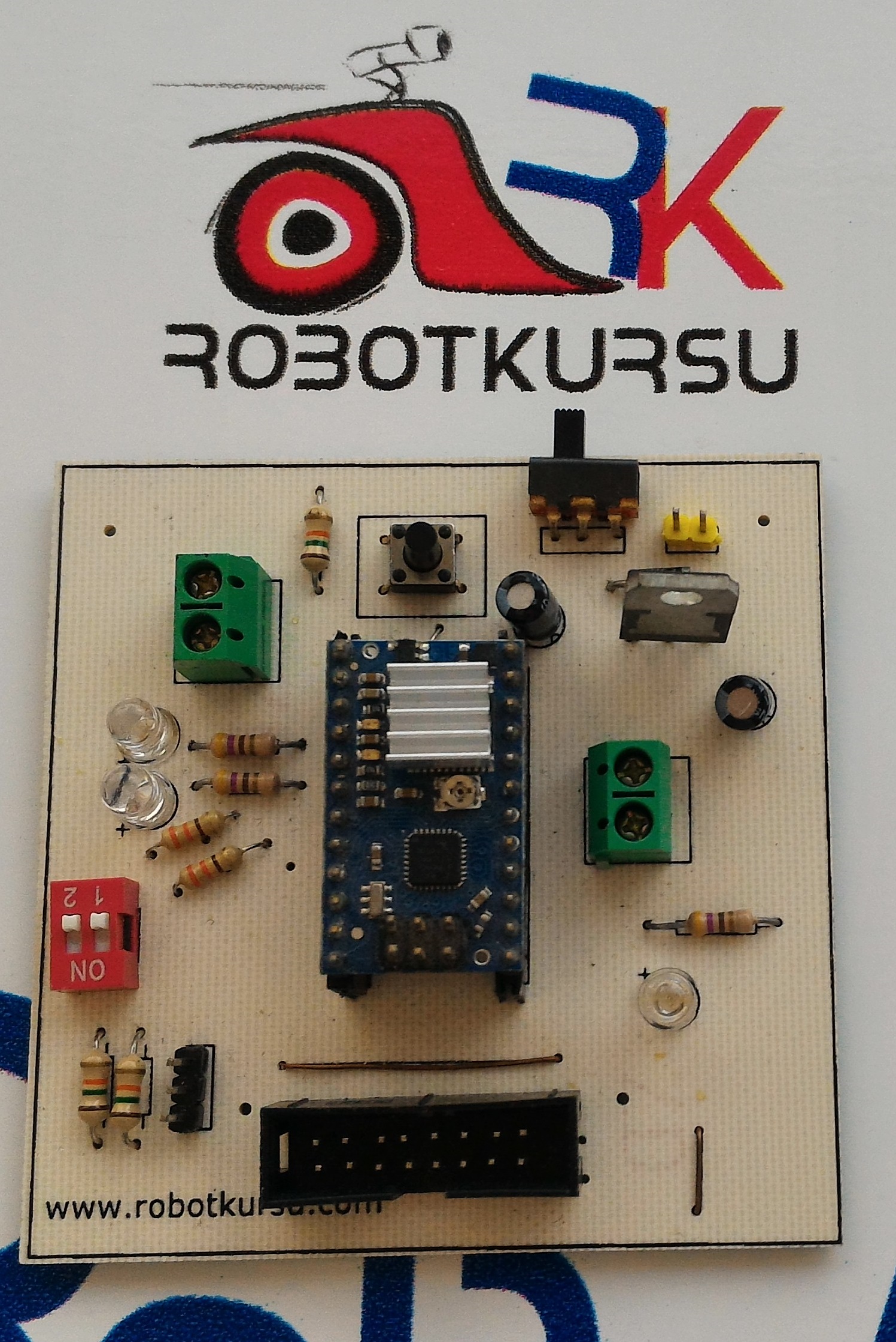76×76 mm ölçülerinde olan bu kartımızda Baby Orangutan motor kontrol kartı bulunmaktadır. PID kontrollü çizgi izleyen robotlarımız da kullanmaktayız. İki adet opsiyonel dip switch bulunmaktadır. İster hız ayarı için isterse simetrik pistlerde A veya B pisti seçimi için kullanılabilmektedir. İki adet kullanıcı için LED bulunmaktadır. Program yazımı sırasında kodun nerede çalıştığını görmek için kullanılmaktadır. Bir adet opsiyonel kullanıma ait buton bulunmaktadır. MZ80 sensörü için ayrı giriş mevcuttur. Sensörlere IDC soket ile kolay sök tak yapılabilecek şekilde ulaşılabilmektedir. Pololu QTR8A sensörü ile uyumlu bir sıradadır. Besleme voltajı max 13 volttur.