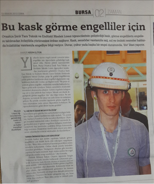 Ayrıca bir başka okul için hazırladığımız şapka sayesinde görme engellilere etrafında olan nesnelerin uzaklığı bir kulaklık vasıtası ile sesli olarak söyleniyor. Bu proje ile Bursa Büyükşehir Belediyesinin düzenlediği 2011 yılı Bilim Şenliğinde büyük ödül kazanılmıştır.