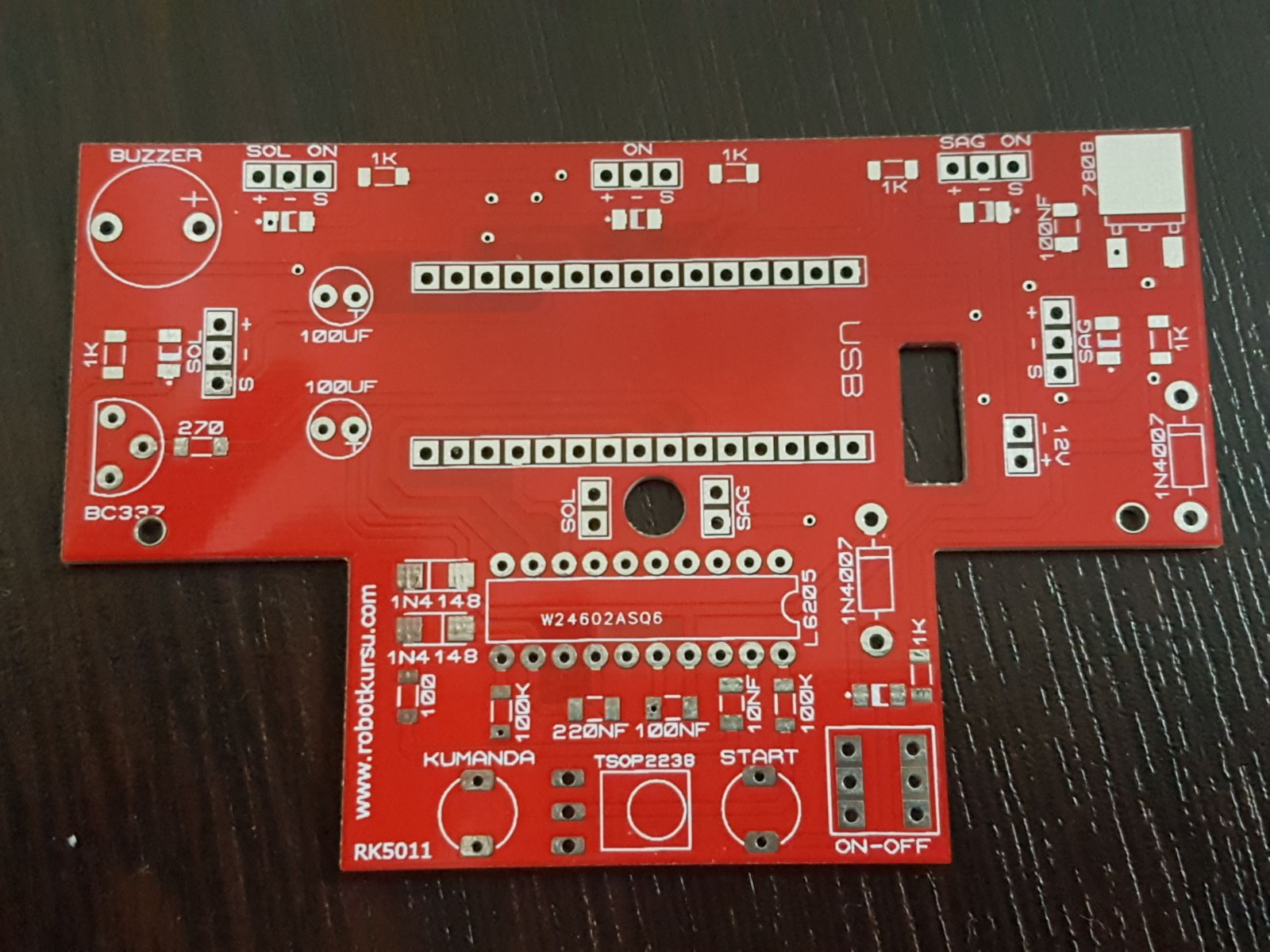 TSOP2238 alıcı ile tümleşik kumanda modülü mevcuttur. Yazılım ile tatkik vermek için ve başlatmak için ayarlanabilir.