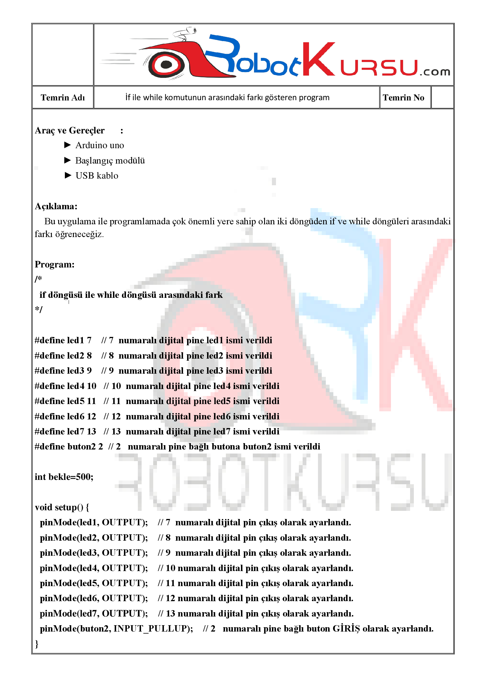 Temrin 109 : if ve while komutları arasındaki fark için
