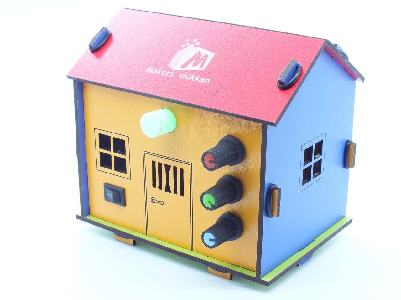 Renkli ahşap parçalardan oluşan Gökkuşağı Evimiz öğrencilerimize elektrik devresi elemanlarını tanıma, devre kurma tekniklerini öğrenme imkanı sunmaktadır. RGB Led(Kırmızı, Yeşil ve Mavi ışık veren lamba) ve Potansiyometre(Ayar Düğmesi) ile renkleri ayarlama imkanı veren STEM ürünümüz KIRMIZI YEŞİL ve MAVİ renklerin karışımlarından oluşan ara renkleri deneyimlemeyi sağlar. Çocuklarımızın renk bilgisini geliştirir. Elektrik enerjisinin ışık enerjisine nasıl dönüştüğünün somut örneğidir.