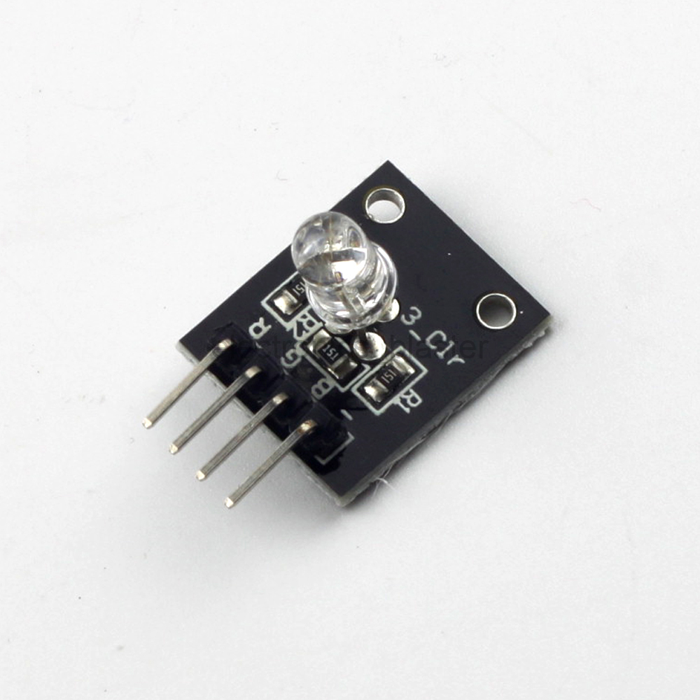 RGB modüller üzerinde 4 adet pin bulunur. Bunlar kırmızı, yeşil ve mavi ledlerin birer adet artı uçları ve hepsine ait ortak eksi ucudur. Kablo kullanmadan direkt olarak modülü arduino üzerine takabilirsiniz. Programı biz 9-10-11-12 nolu pinlere takılacak şekilde yazdık. Modülün eksi ucunu 12 nolu pine denk getiriniz. Program başında bu pini lojik 0 yaparak kendi GND ucumuzu yapmış olduk. Dikkat ederseniz arduino uno üzerinde 3-5-6-9-10-11 nolu pinler üzerinde alternatif sembolü var. Bu pinlerden analog çıkış alınabilir. Dijital çıkış veren pinlere bağlı led ya yanıktır ya da sönük. Oysa ki analog pinlerden 0 ile 5V arasında istediğimiz gerilimi üreterek ledin parlaklığını değiştirebiliriz.