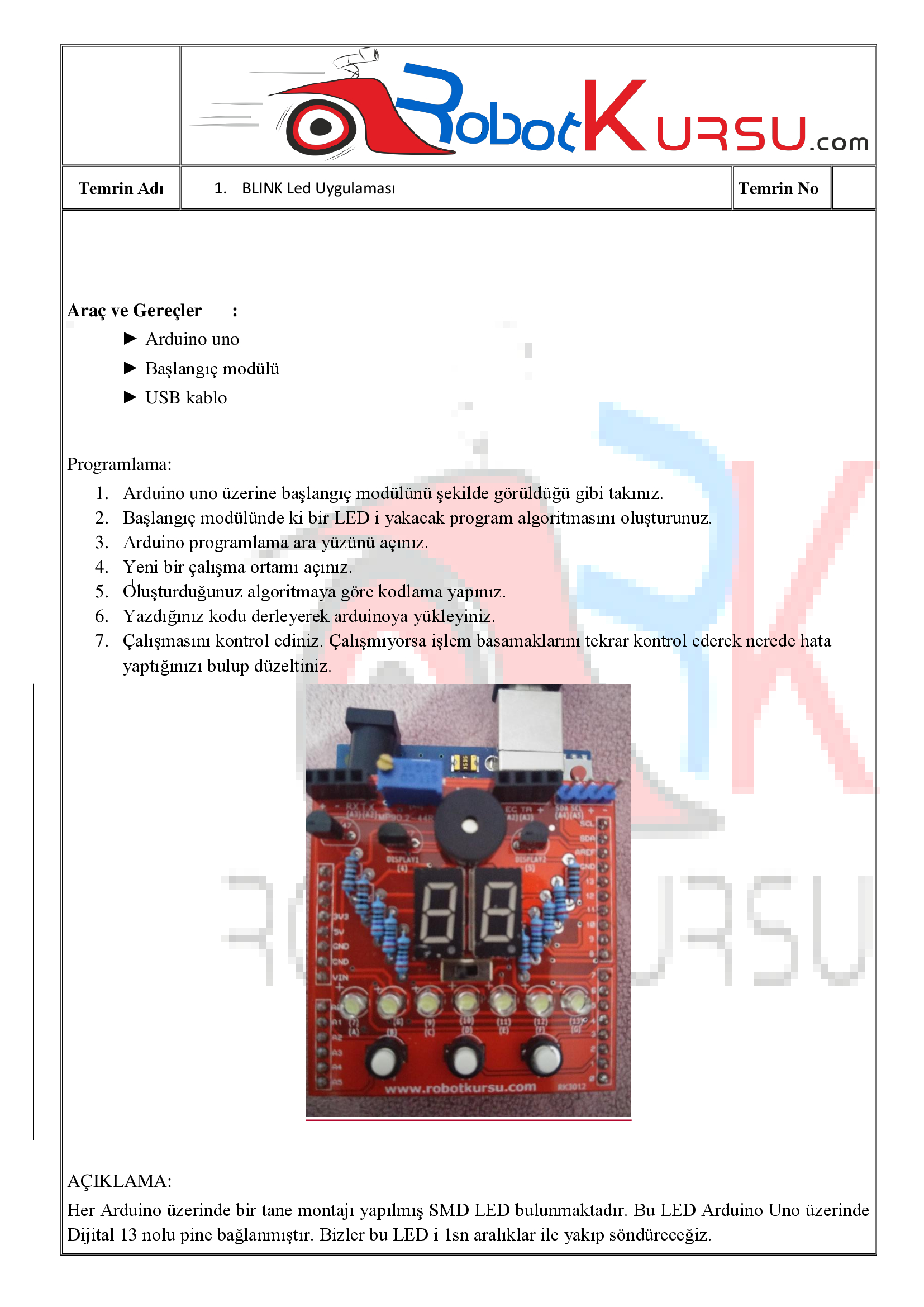 Temrin 104 : İlk programım LED Yak
