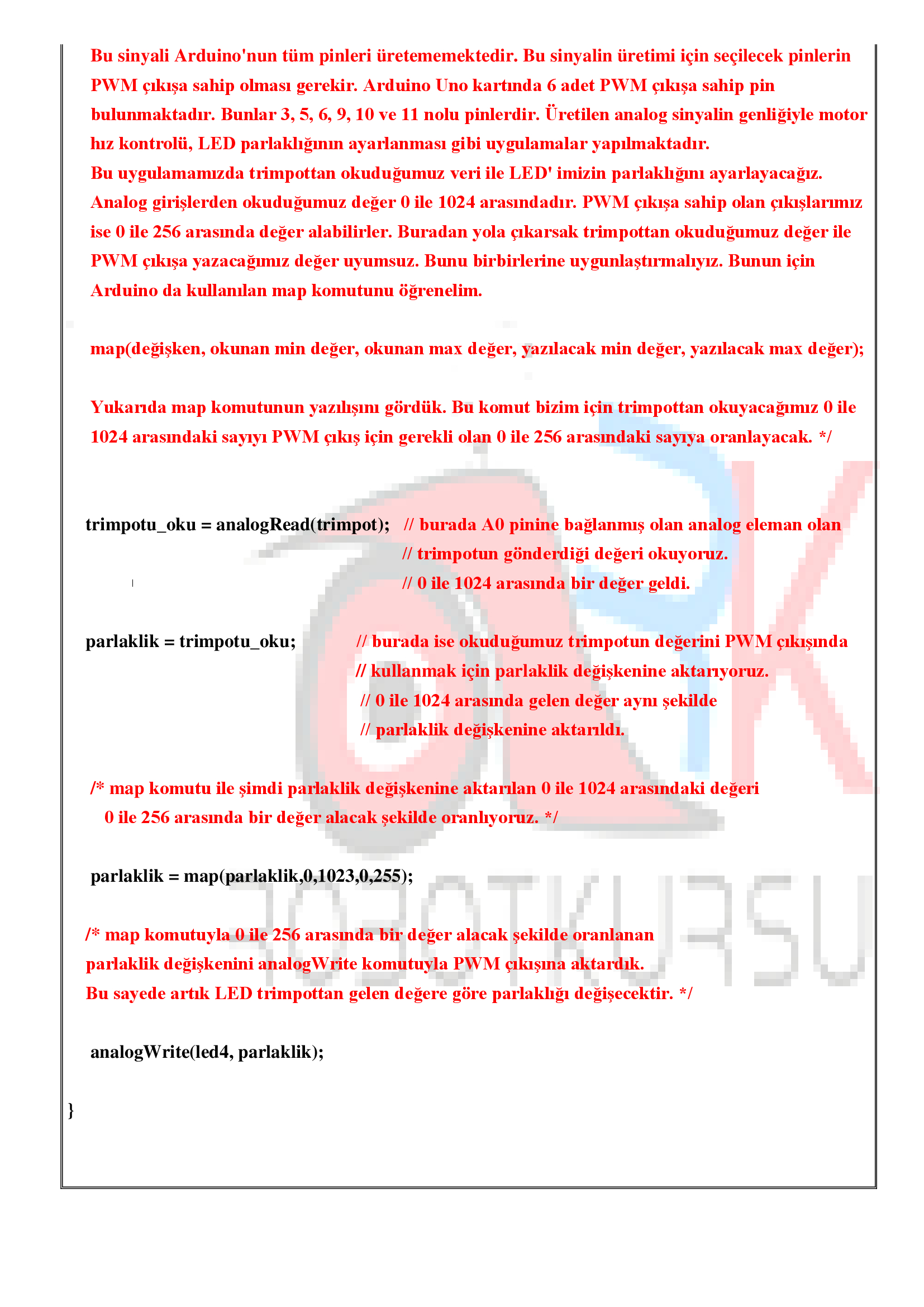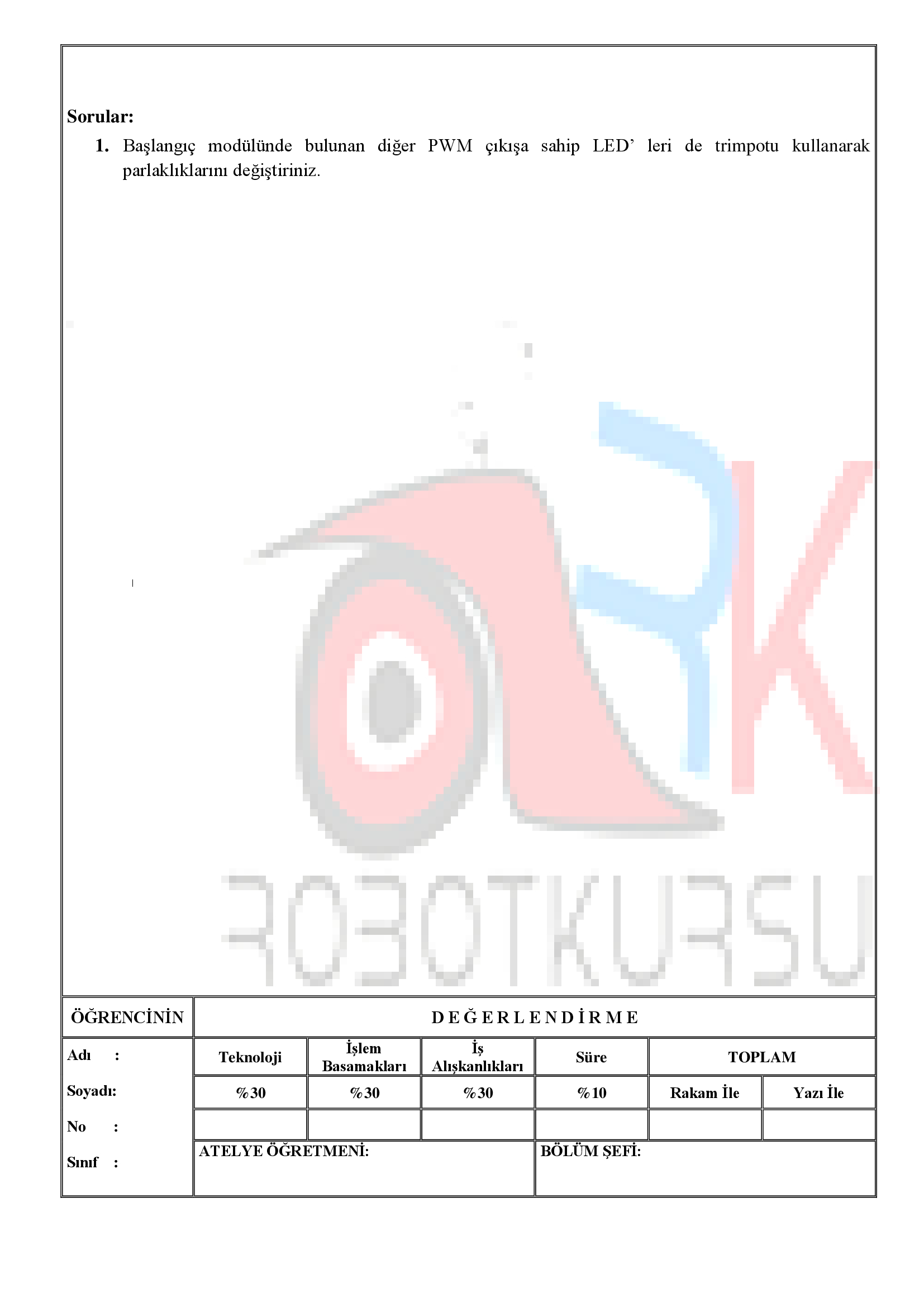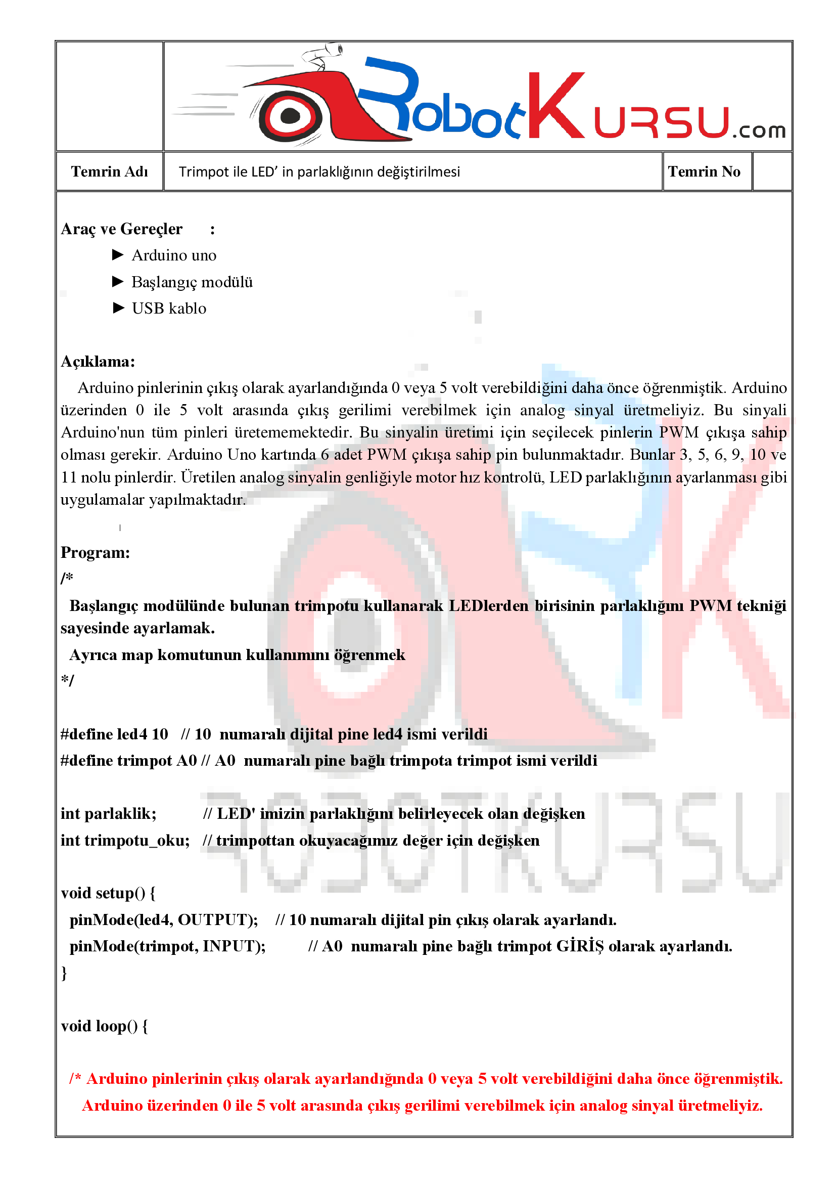 Temrin 111: Trimpot ile LED’ in parlaklığının değiştirilmesi için