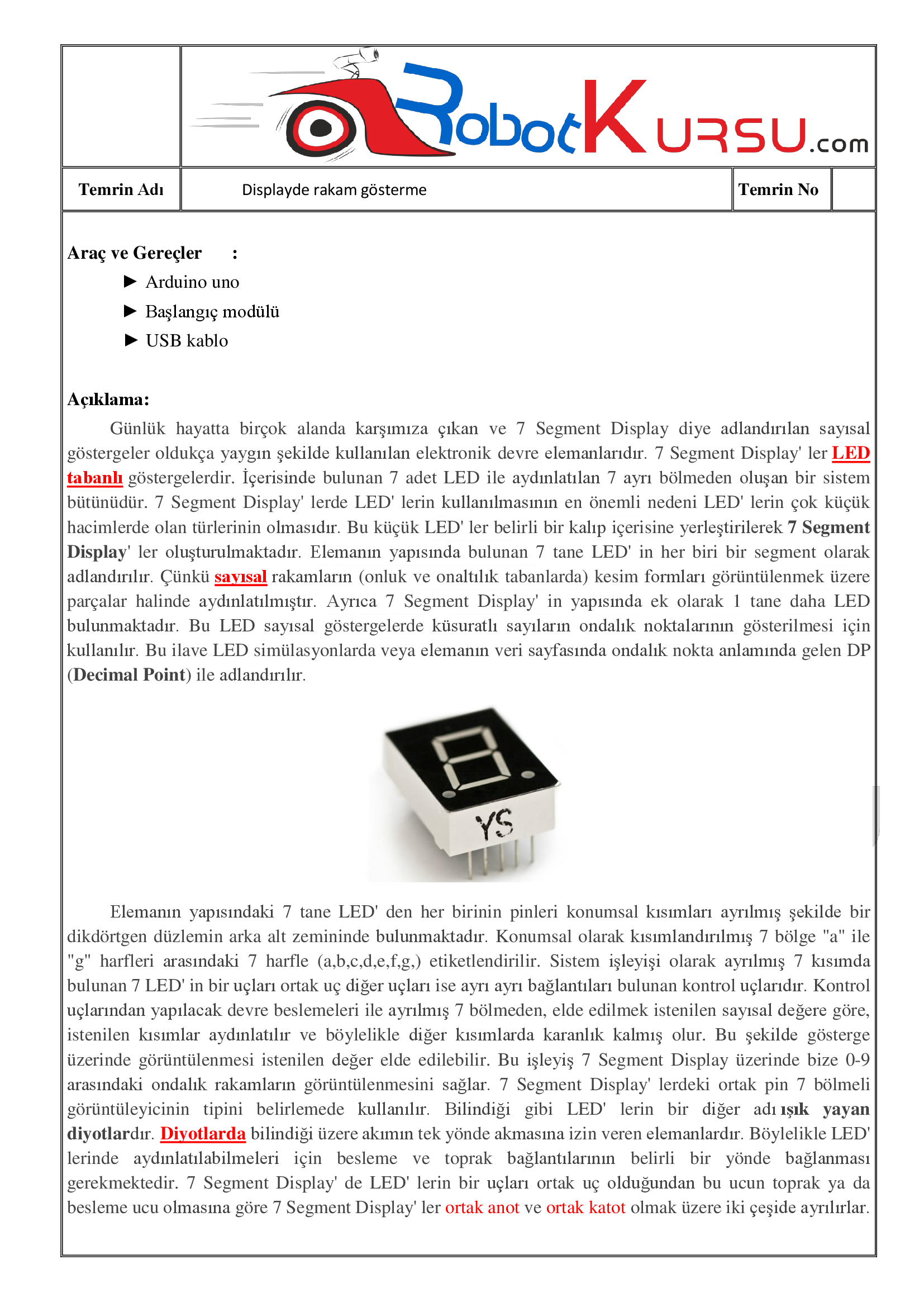 Temrin 111: Trimpot ile LED’ in parlaklığının değiştirilmesi