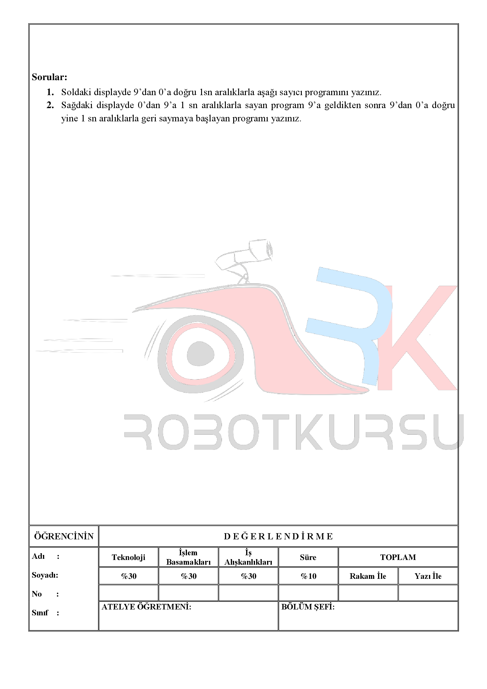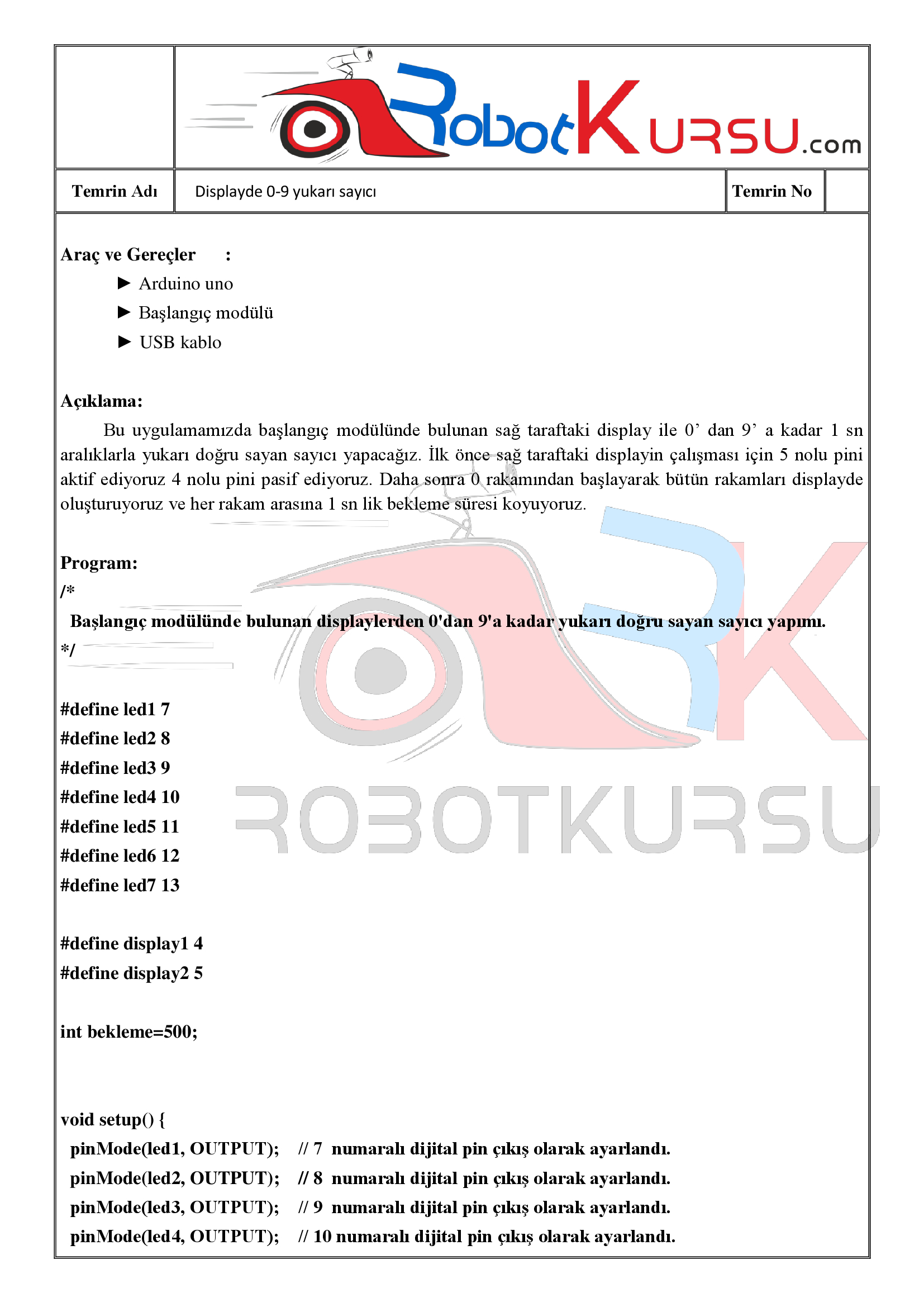 Temrin 113 : Display de 0-9 yukarı sayıcı için